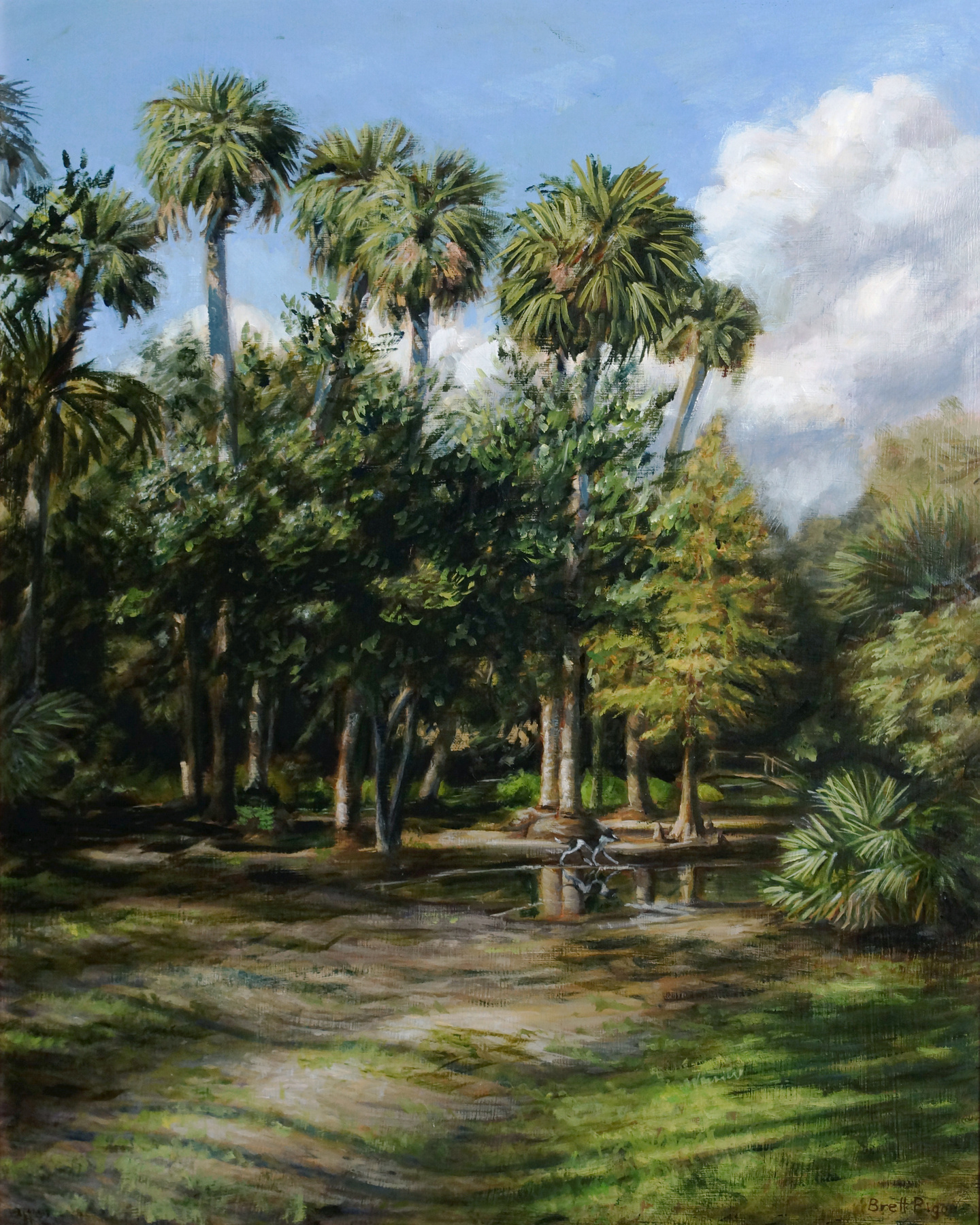 Sand Bars 16x20 inches oil on wood panel Florida yard after storm flooding depositing sand bars, dog patrols her usual walk $1000 + shipping, unframed (click photo to return)