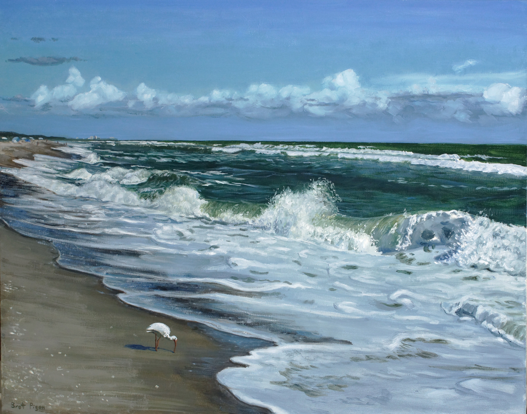 The Churn 22x28 inches oil on canvas Ibis enjoying morning at the beach in Melbourne, FL $2000 + shipping, unframed (click photo to return)